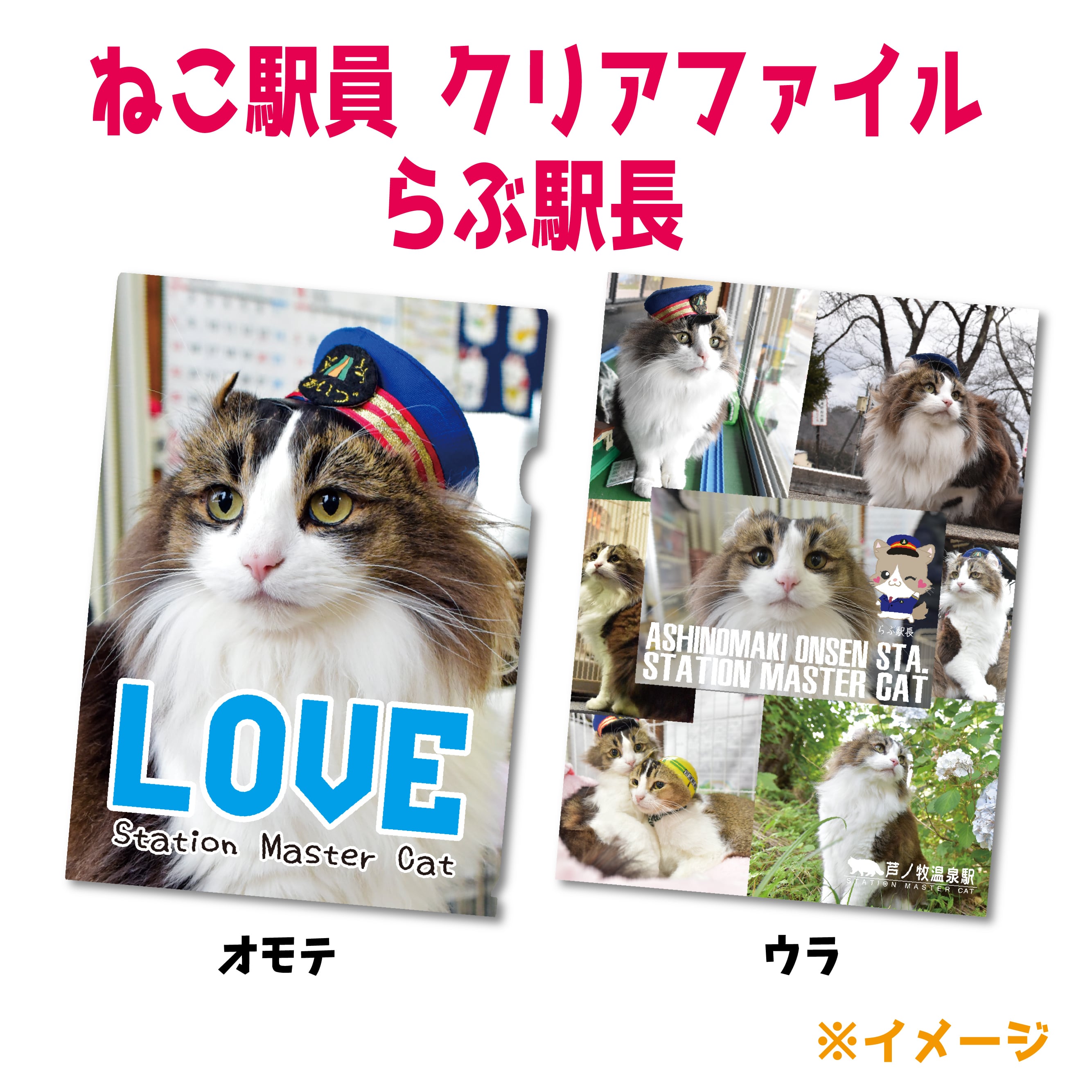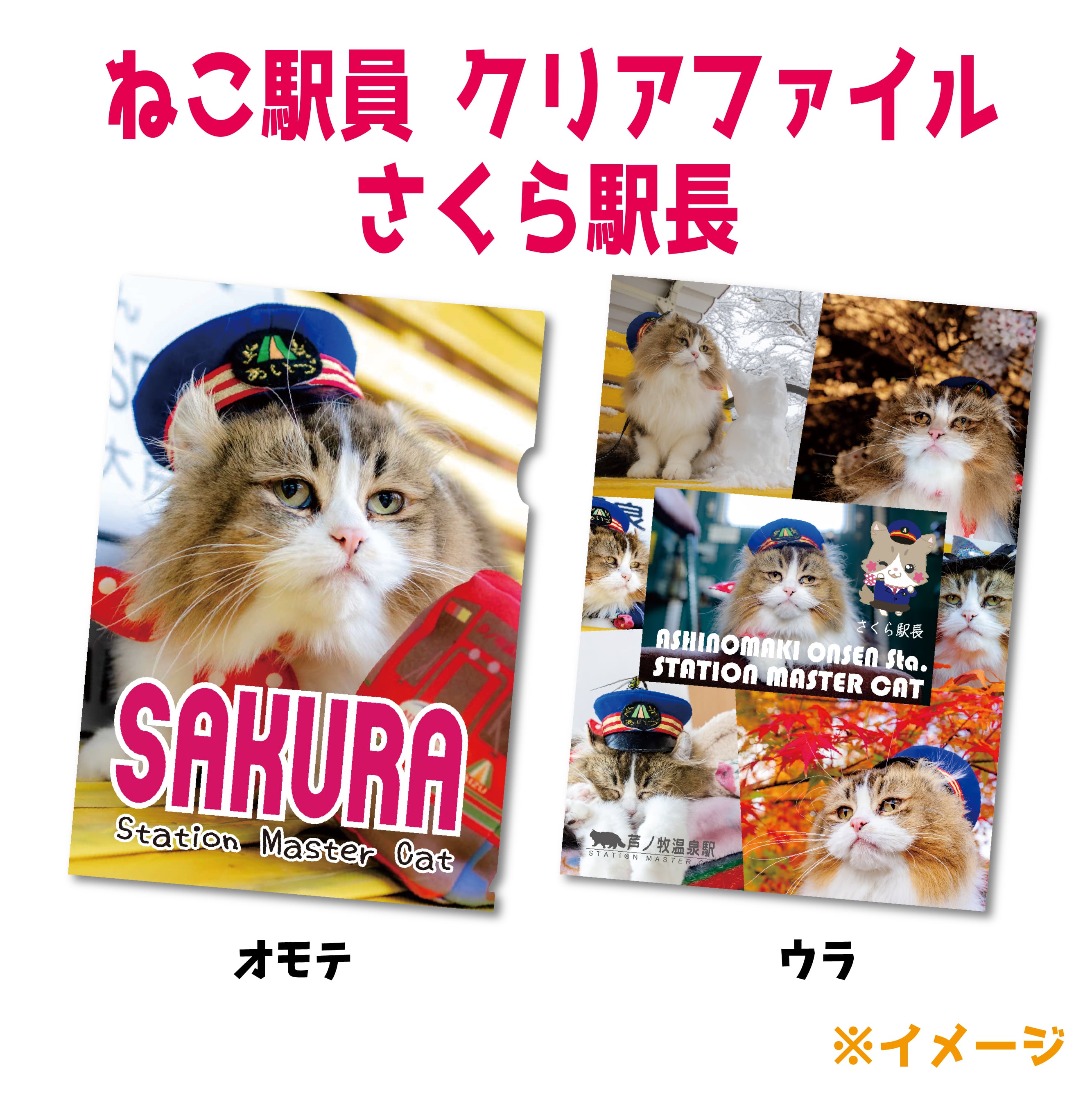 癒しの存在、ねこ駅員がデザインされたA4クリアファイルです!可愛らしい駅員姿の猫たちが、あなたの書類をしっかりと守ります。